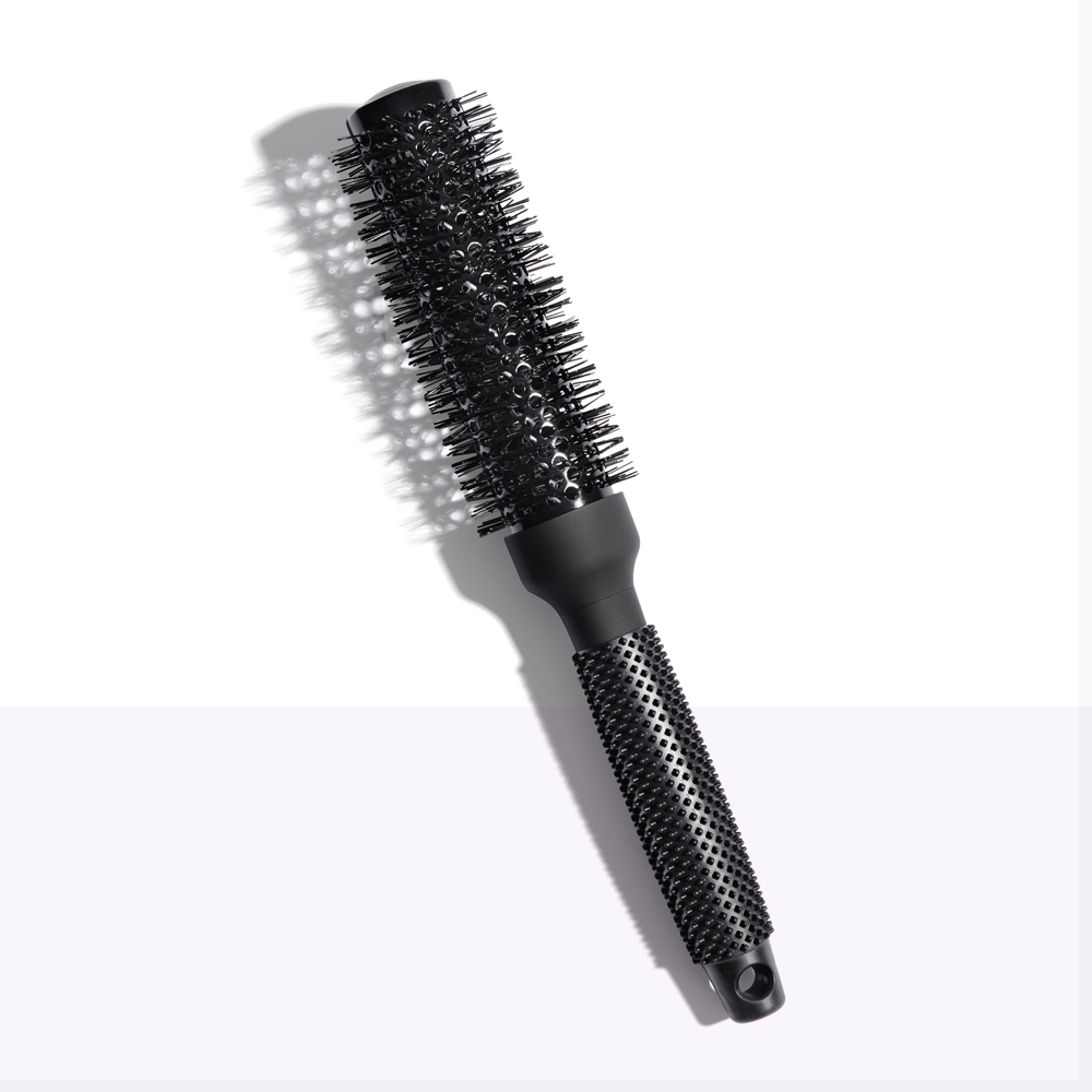 El diseño del mango sin costuras evita que el cabello se enganche. Cerdas de nailon resistentes al calor con turmalina para una humedad brillante.